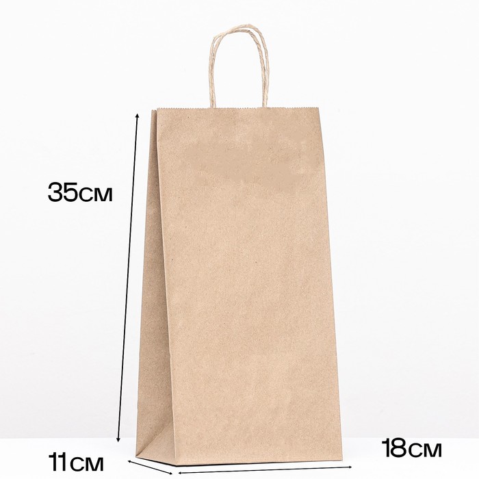 Пакет бумажный крафт 90 г/м², круглая ручка 11 х 18 х 35 см