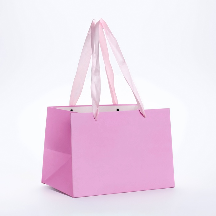 Пакет подарочный с широким дном 20×14×13.2 см, розовый
