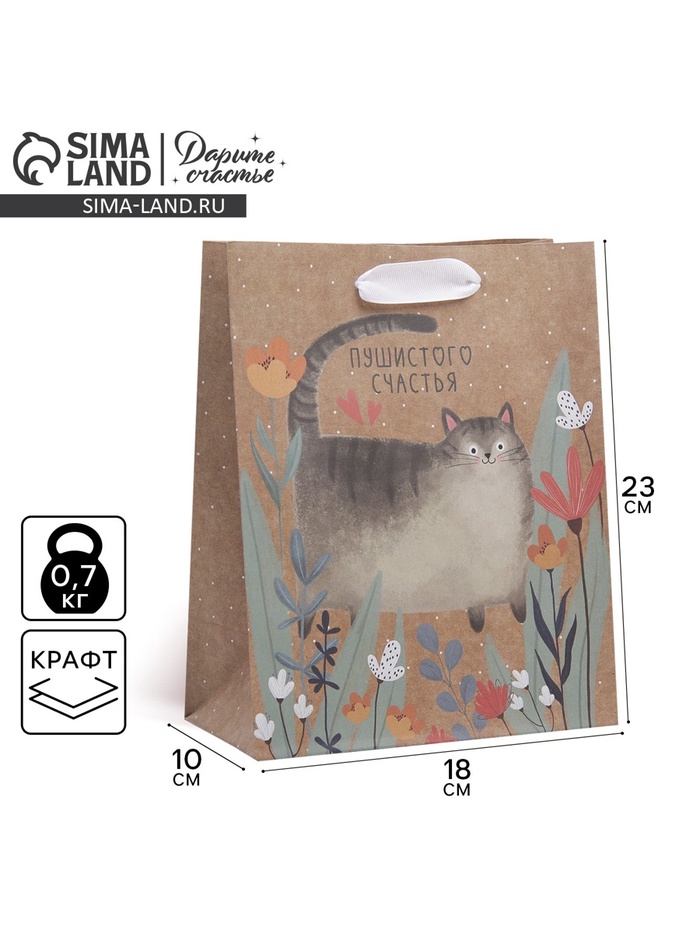 Пакет подарочный крафтовый, упаковка, «Пушистого счастья», MS 18 х 23 х 8 см