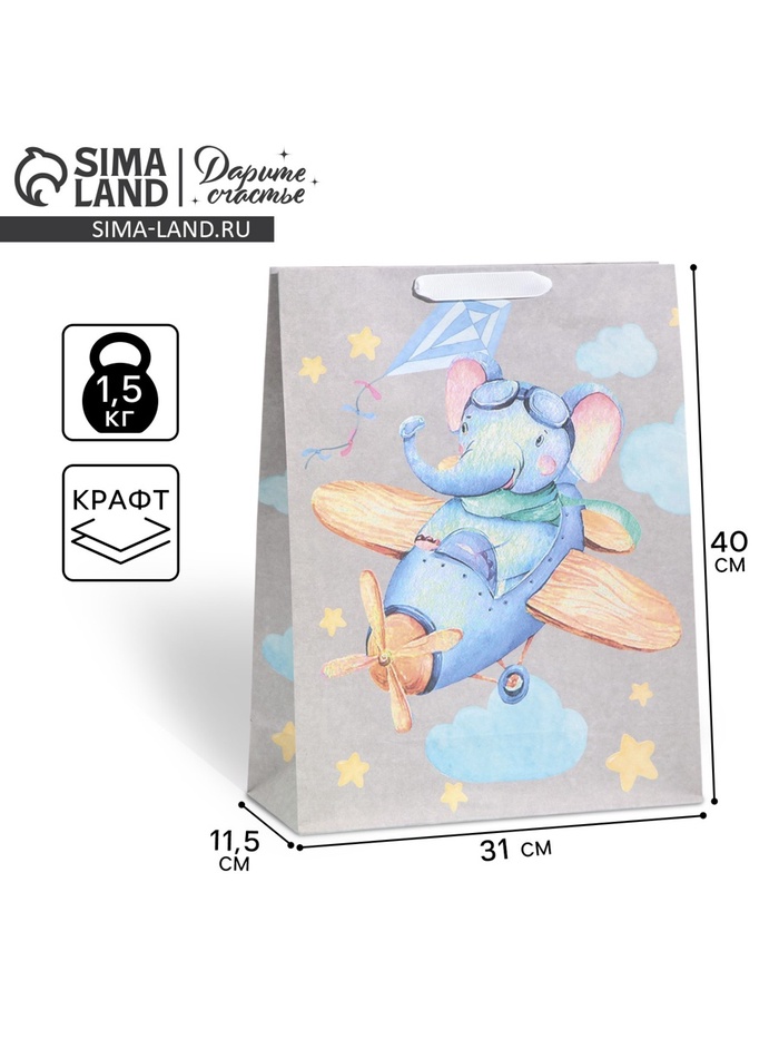 Пакет подарочный крафтовый, упаковка, «Малышам», L 31 х 40 х 11.5 см