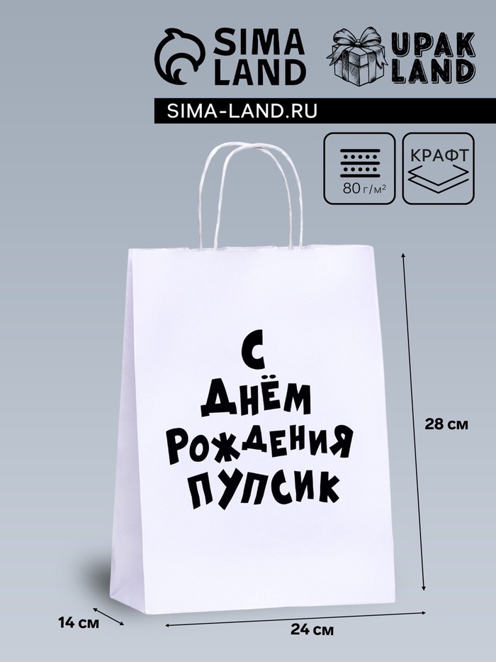 Пакет подарочный с приколами, крафт «Пупсик», белый, 24×14×28 см, 1 шт.