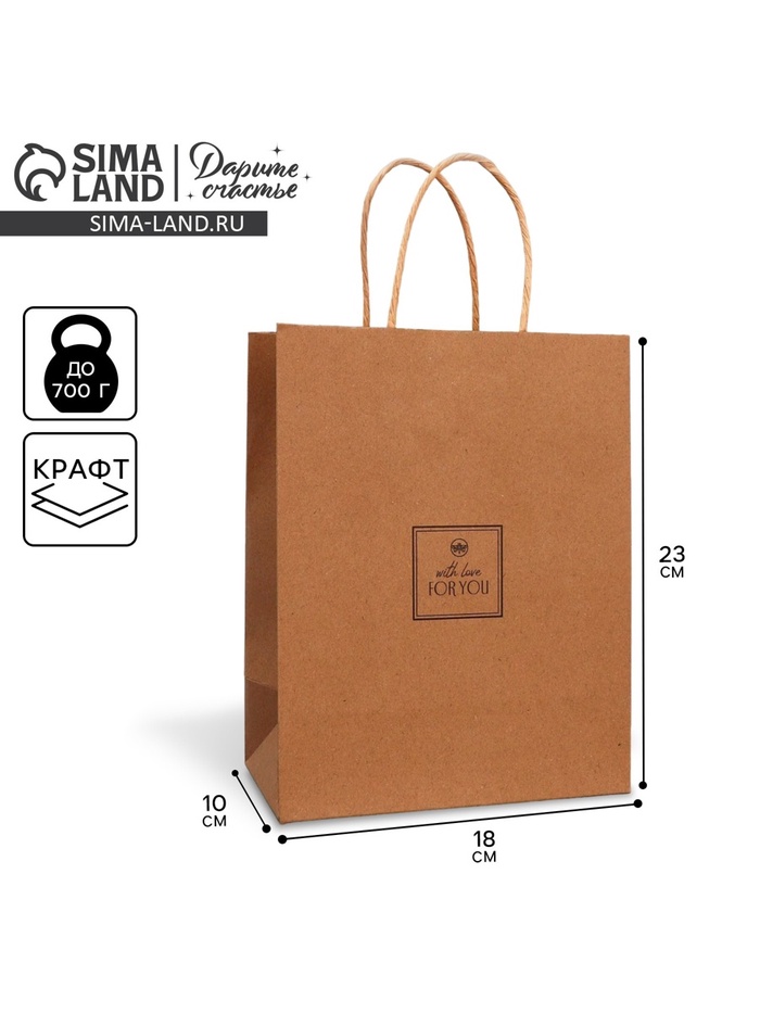 Пакет подарочный крафтовый, упаковка, «С любовью», MS 18 х 23 х 10 см