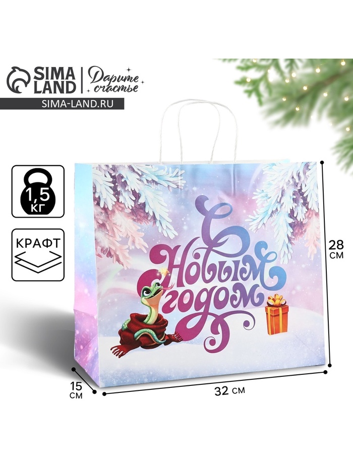 Пакет подарочный новогодний «С новым годом», белый крафт, 32×28×15 см