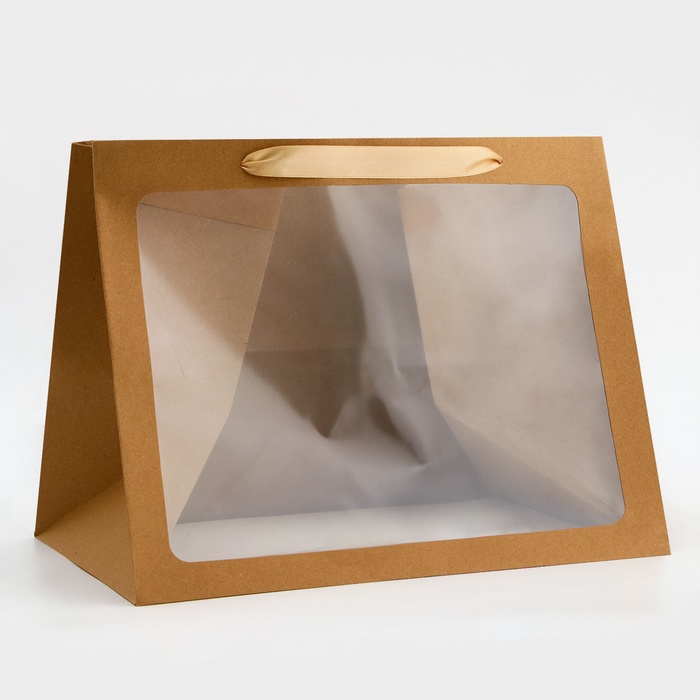 Пакет подарочный с широким дном и окном 35×29×28 см, крафт