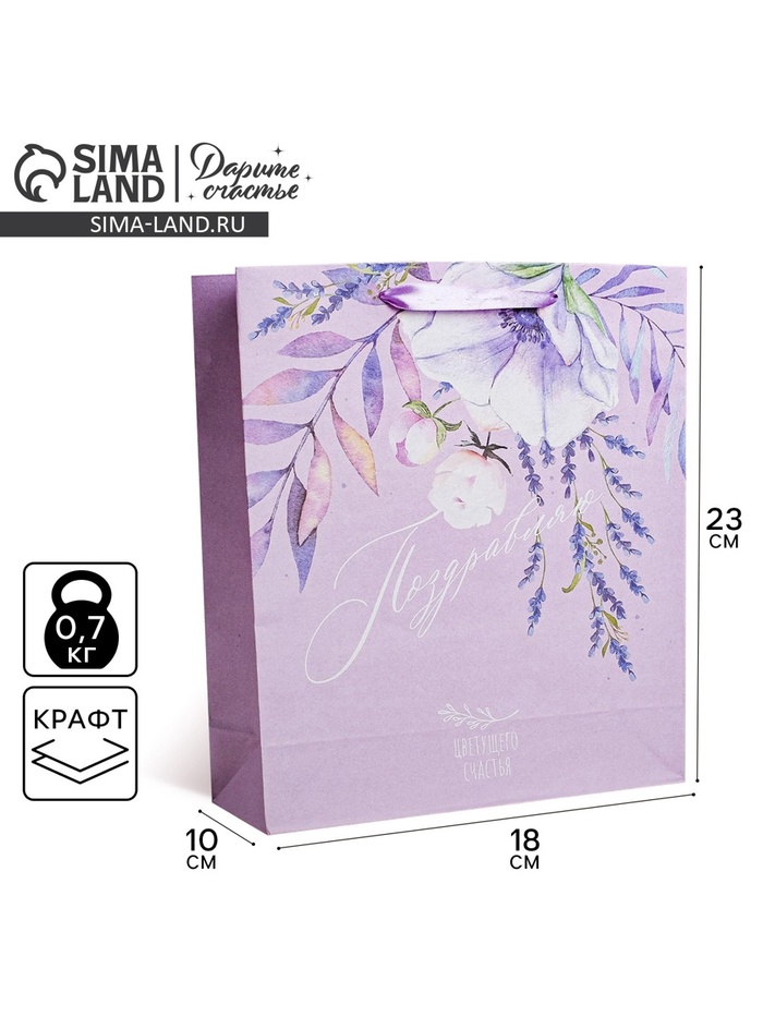 Пакет подарочный крафтовый, упаковка, «Поздравляю», MS 18 х 23 х 10 см