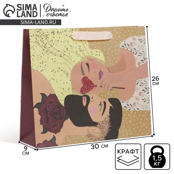Пакет подарочный крафтовый, упаковка, «Любовь», M 30 х 26 х 9 см