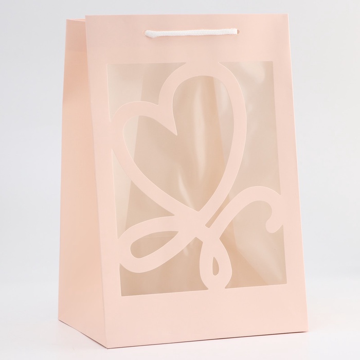 Пакет подарочный с фигурным окном, 20×16×30 см, розовый