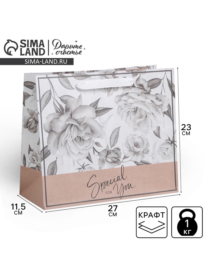 Пакет подарочный крафтовый, упаковка, Special for you, 27 х 23 х 11.5 см