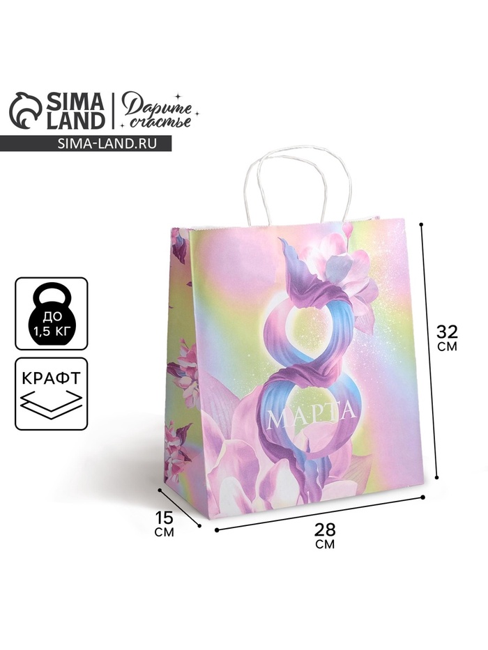 Пакет подарочный крафт, упаковка, «8 марта», 28 х 32 х 15 см