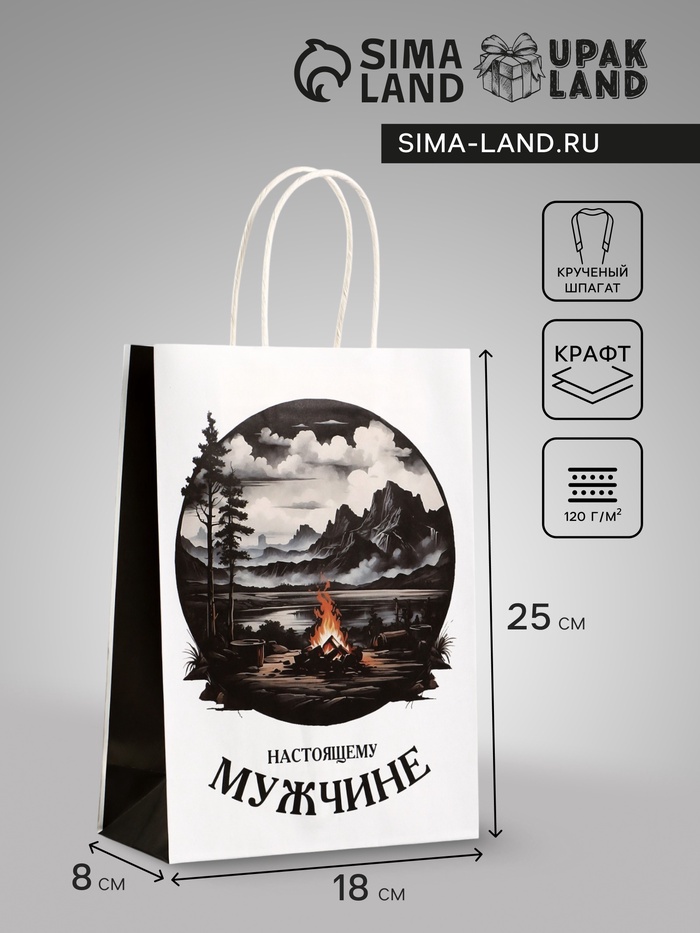 Пакет подарочный крафт «Настоящему мужчине», 18×8×25 см