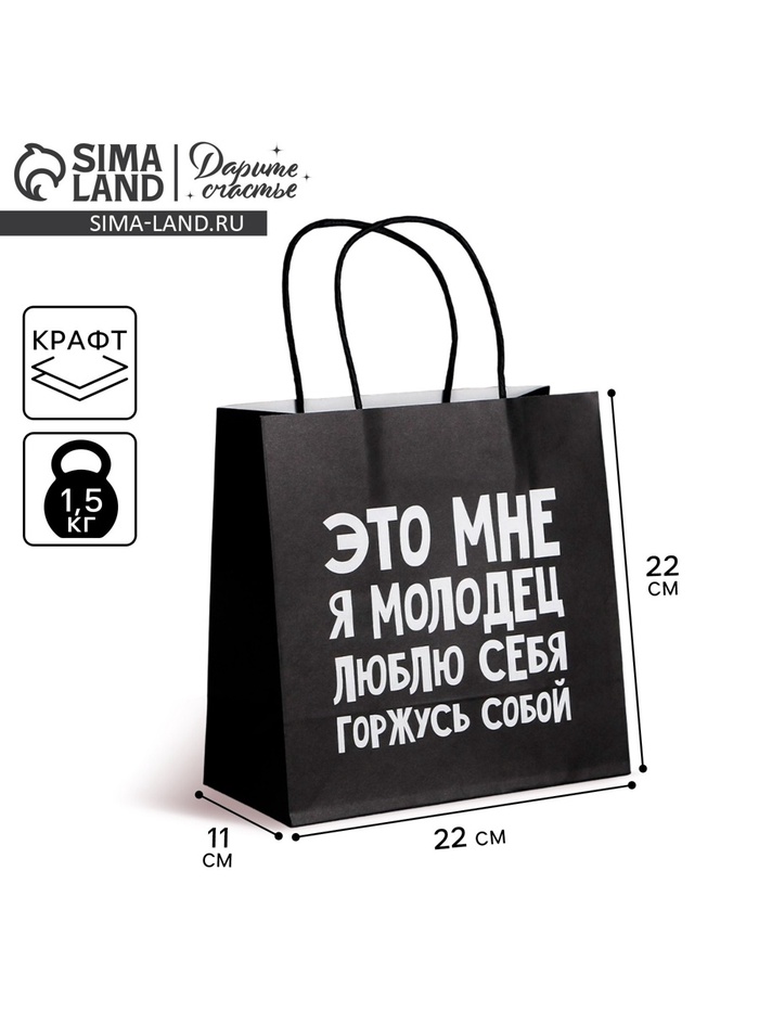 Пакет подарочный, упаковка, «Люблю себя», 22 х 22 х 11 см