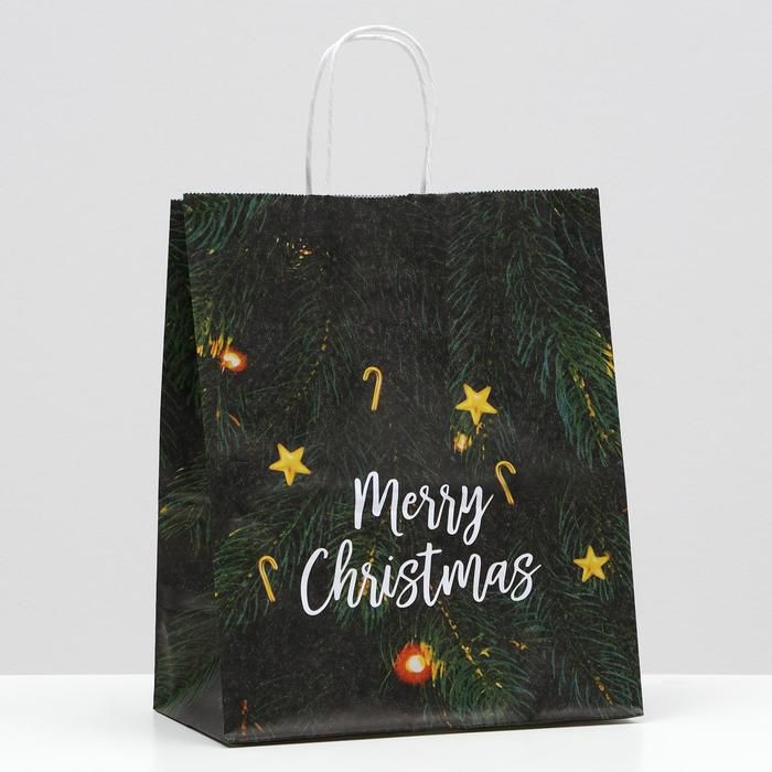 Пакет бумажный подарочный новогодний крафт «Новогоднее настроение» 26×32×12 см