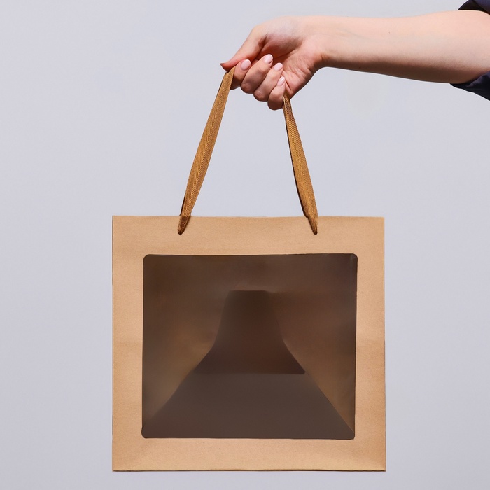 Пакет подарочный, крафт, с окном, 30×30×30 см