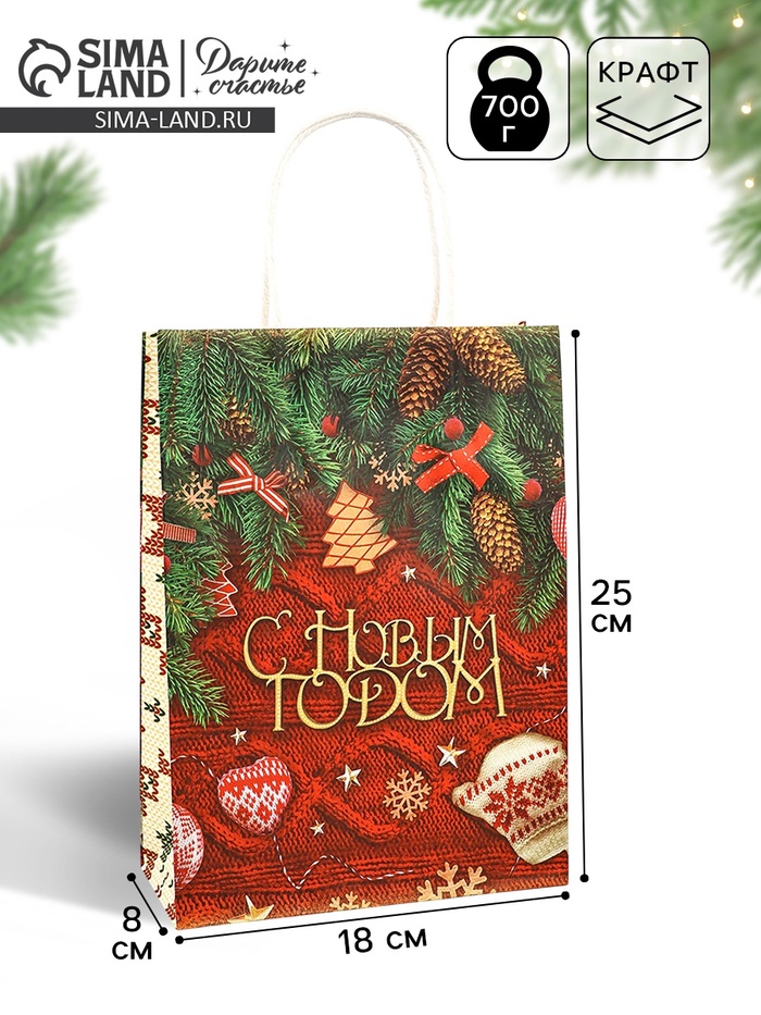 Пакет бумажный подарочный новогодний крафт «Новогодняя атмосфера» 18×8×25 см
