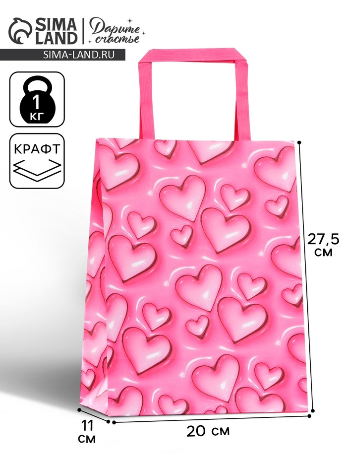 Пакет подарочный «Сердца», 20×11×27.5 см
