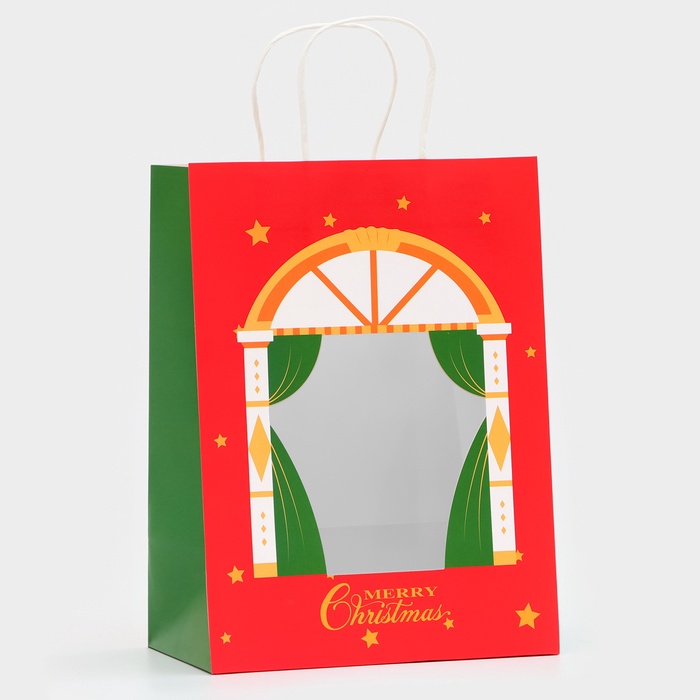 Пакет подарочный бумажный с окном «Театр» 30×22×14 см, крафт красный