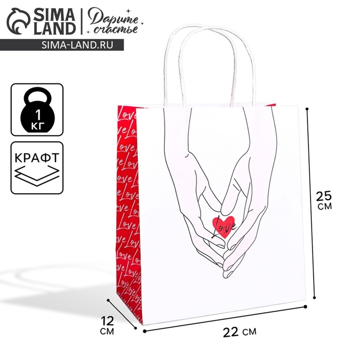 Пакет подарочный крафтовый, упаковка, «Сердце», 22×25×12 см