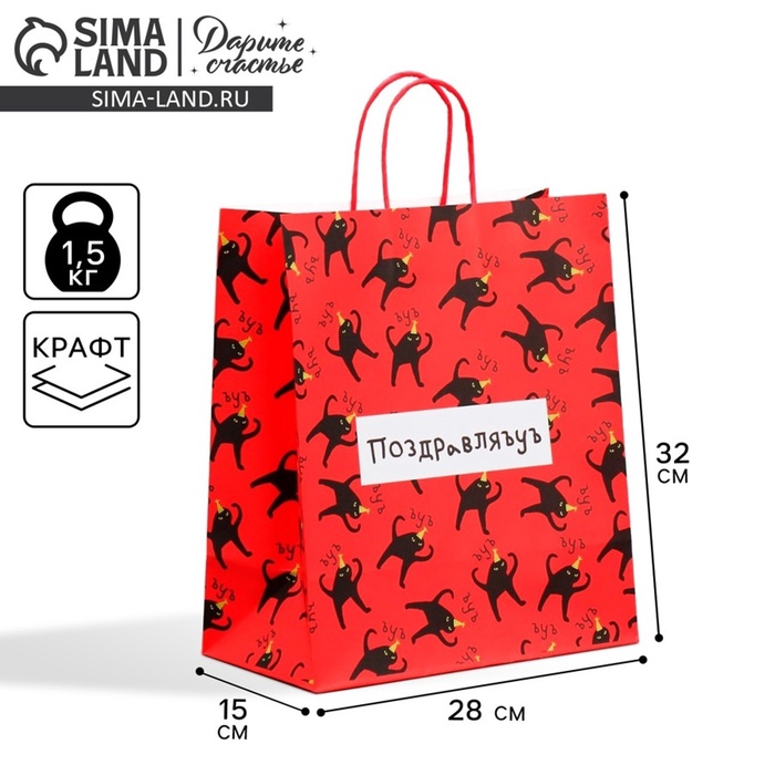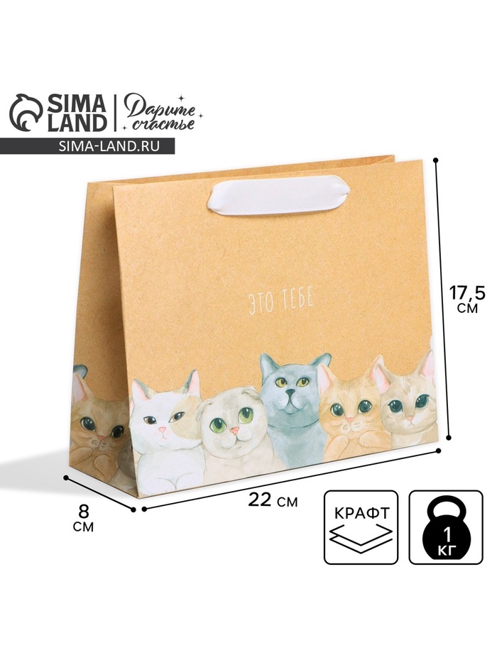 Пакет подарочный крафтовый, упаковка, «Киса», 28×32×15 см