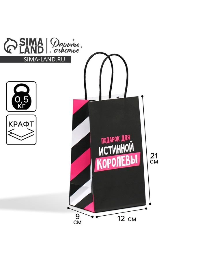 Пакет подарочный крафтовый, упаковка, «Королева», 12×21×9 см