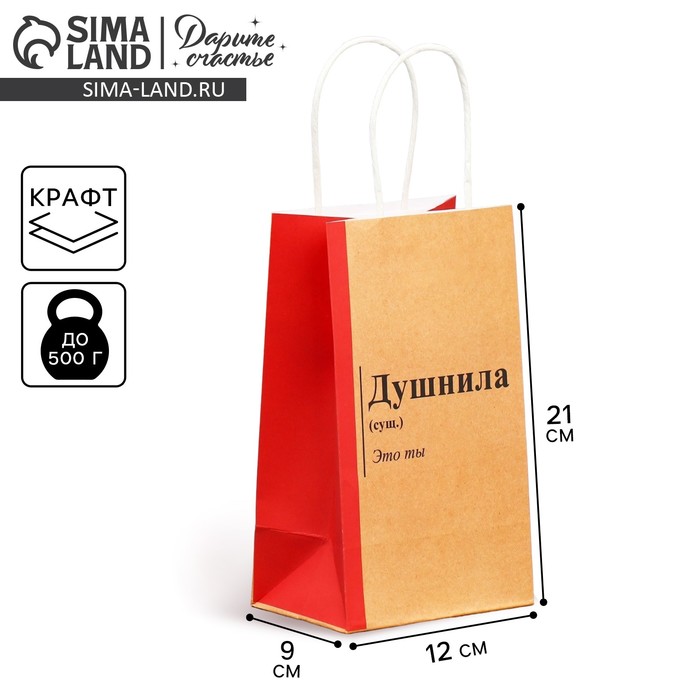 Пакет подарочный крафтовый, упаковка, «Душнила», 12×21×9 см