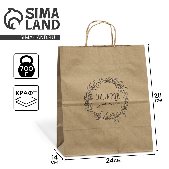 Пакет подарочный крафтовый, упаковка, «Подарок для тебя», 24×28×14 см