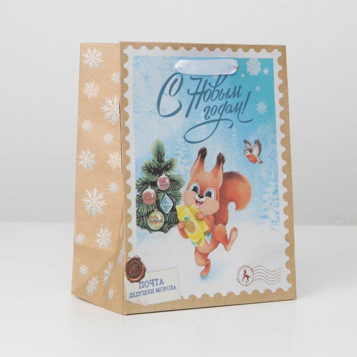 Пакет подарочный новогодний крафтовый «Белочка», MS 18 х 23 х 10 см