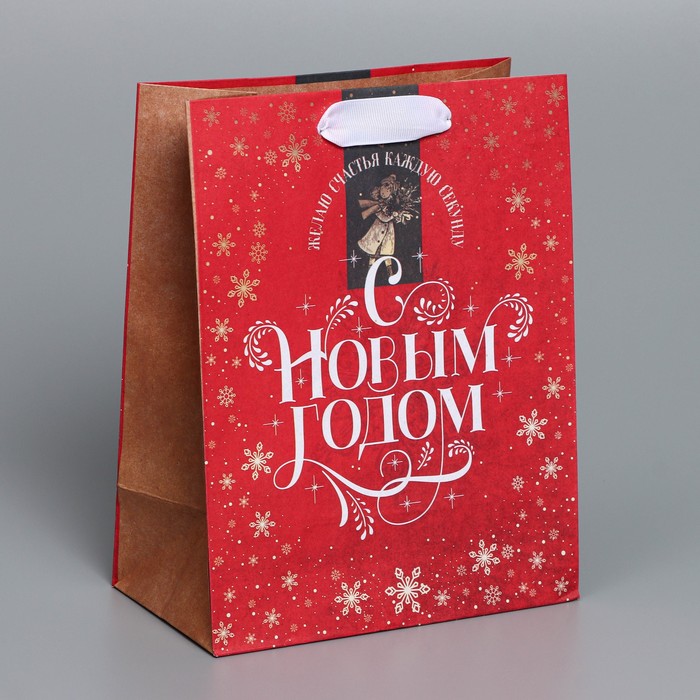 Пакет подарочный новогодний крафтовый «Желаю счастья», MS 18 х 23 х 10 см
