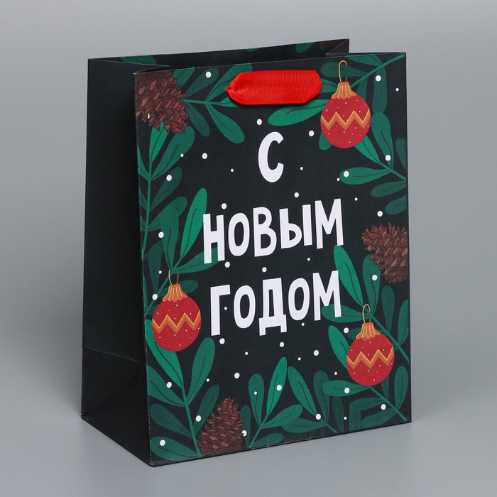 Пакет подарочный новогодний крафтовый «Green», MS 18 х 23 х 10 см