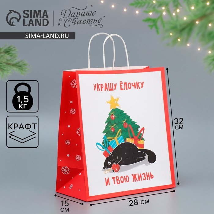 Пакет подарочный новогодний крафтовый «Ёлочка», 28×32×15 см