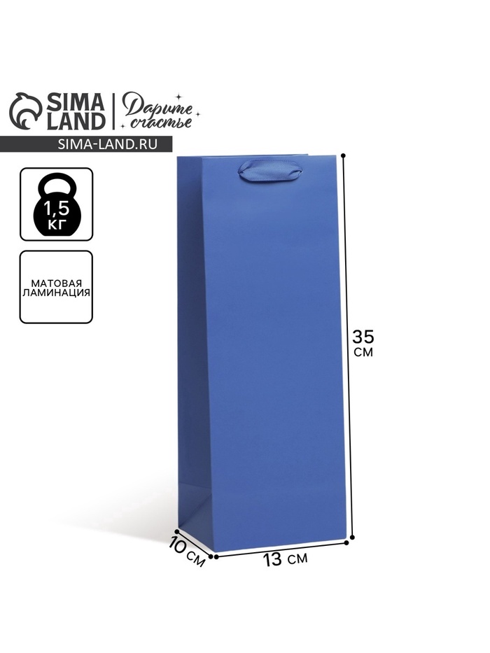 Пакет подарочный под бутылку, упаковка, «Синий», 13 x 35 x 10 см