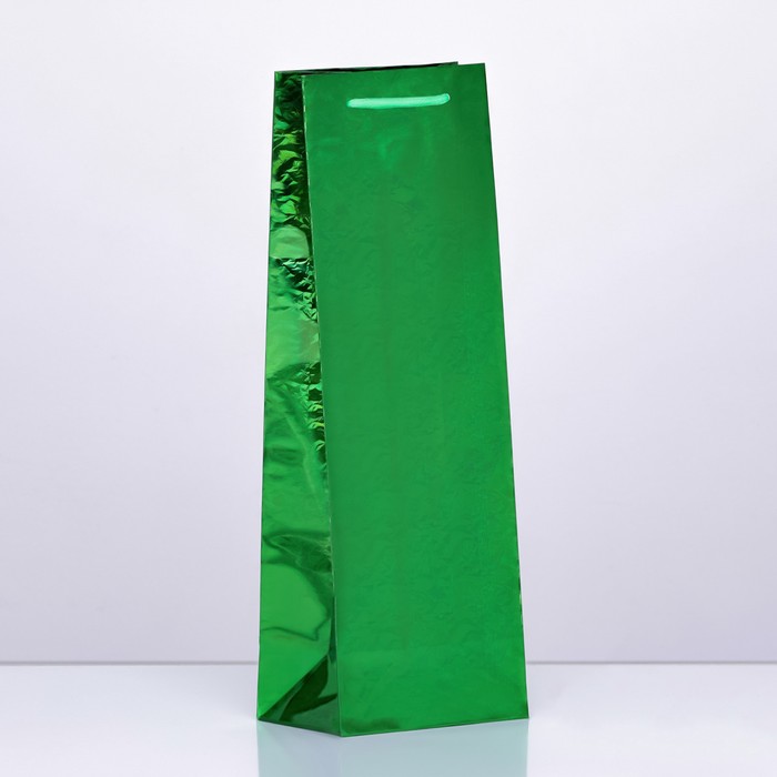 Пакет подарочный, новогодний под бутылку фольгированный, «Зеленый» 35×12×9 см
