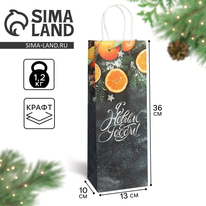 Пакет под бутылку «Мандарины», 13 x 36 x 10 см