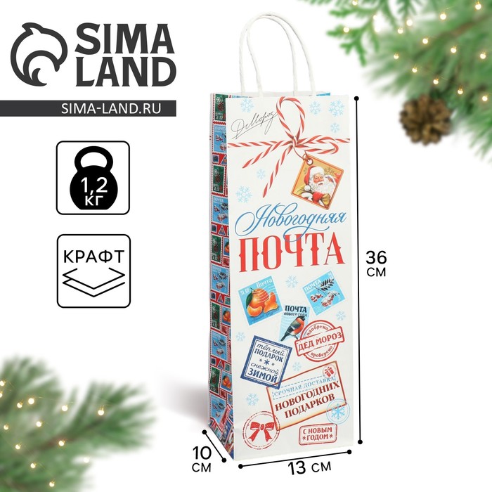 Пакет под бутылку «Новогодняя почта», 13 x 36 x 10 см