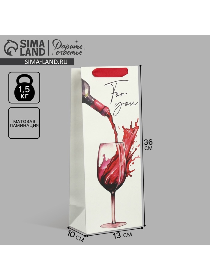 Пакет подарочный под бутылку, упаковка, For you, 35 х 13 х 10 см