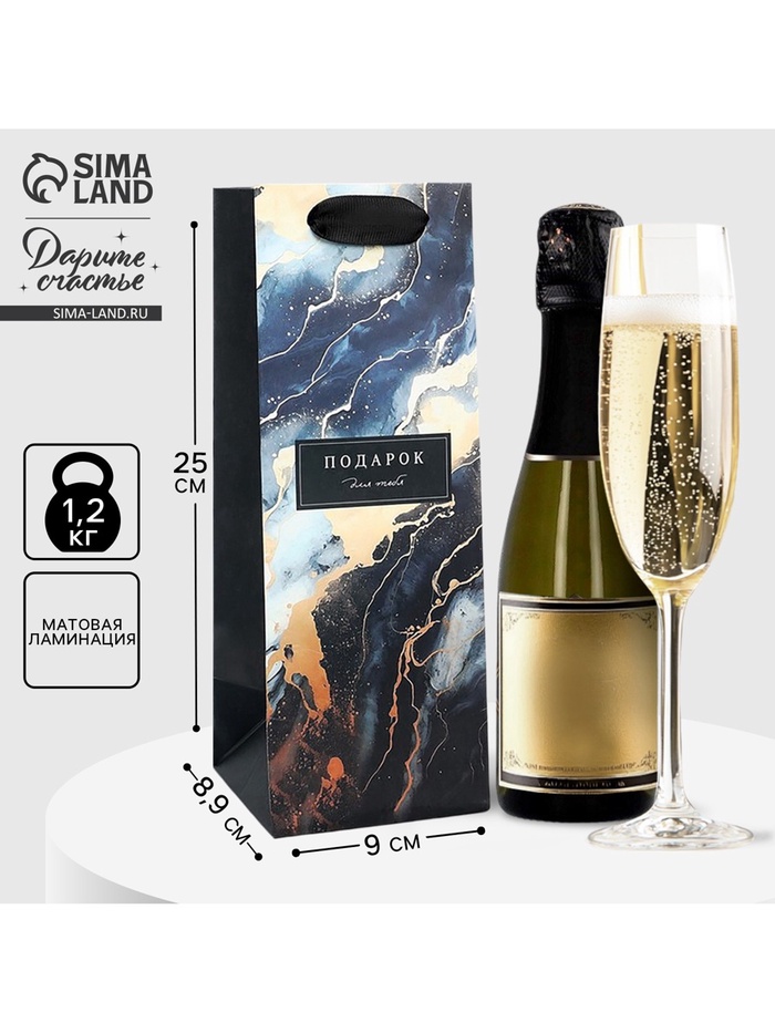 Пакет подарочный под бутылку, упаковка, «Мрамор», 9 х 25 х 8.5 см