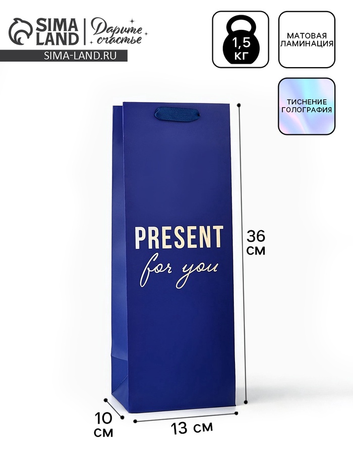 Пакет подарочный ламинированный под бутылку, упаковка, «Present», 13 x 36 x 10 см