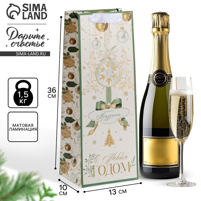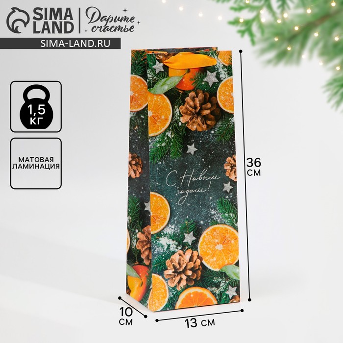 Пакет под бутылку крафтовый «Новогоднее настроение», 13 х 36 х 10 см