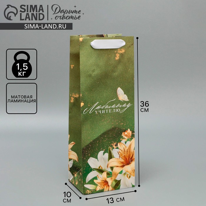 Пакет подарочный под бутылку, упаковка, «Учителю», 35 х 13 х 10 см
