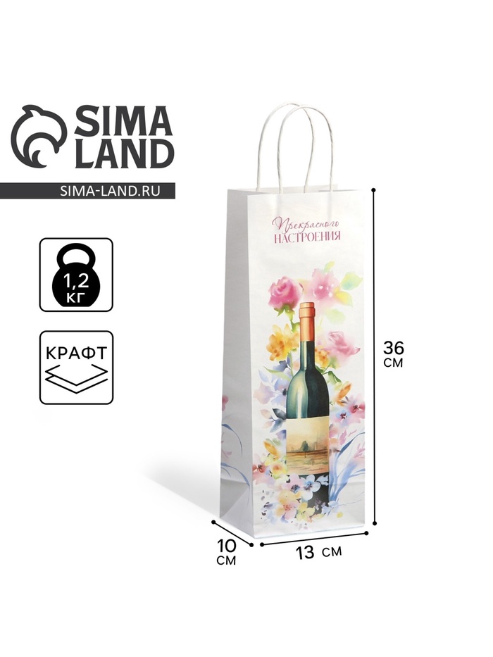 Пакет подарочный под бутылку, упаковка, «Прекрасного настроения», белый крафт, 13 х 36 х 10
