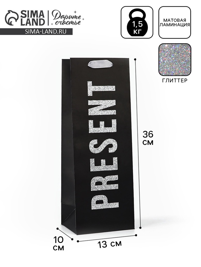Пакет ламинированный под бутылку «Подарок для тебя», глиттер, 13 х 36 х 10 см