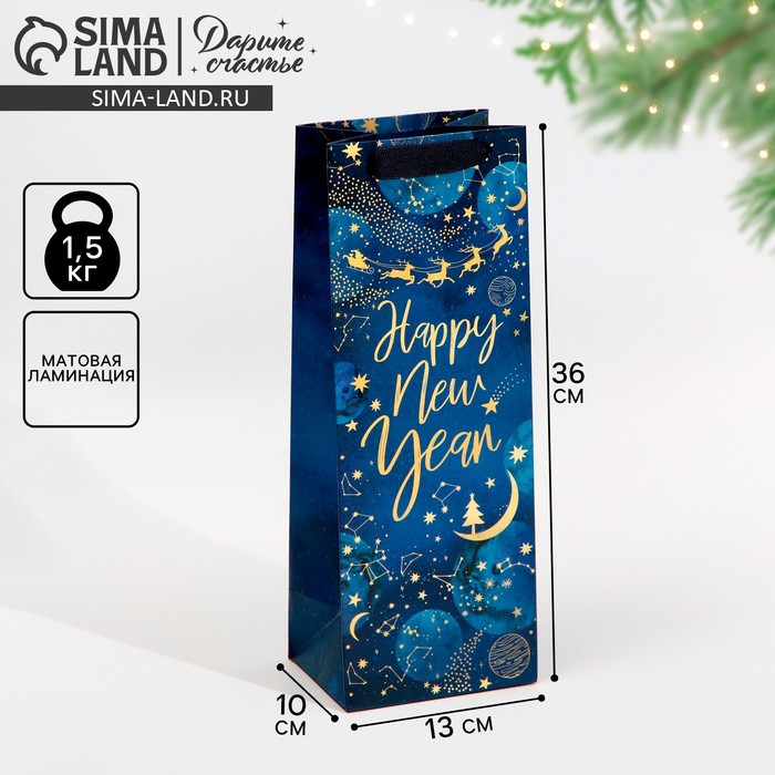 Пакет под бутылку «Новогодний космос», 13 х 36 х 10 см