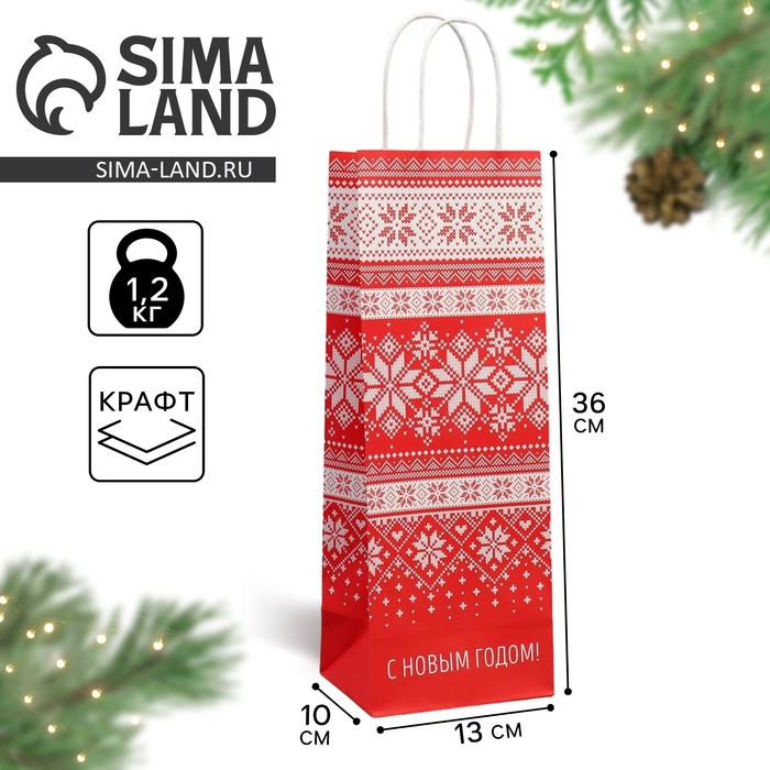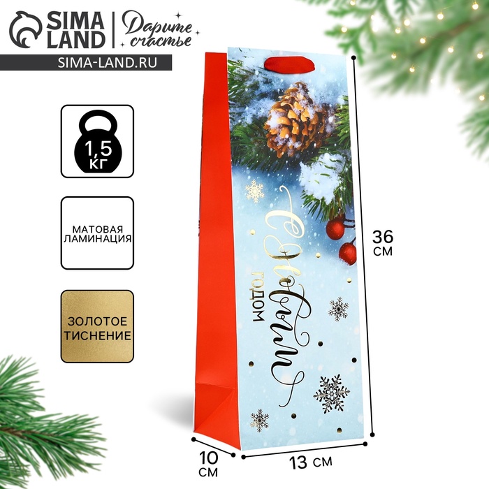 Пакет под бутылку «С Новым годом», 13×36×10 см