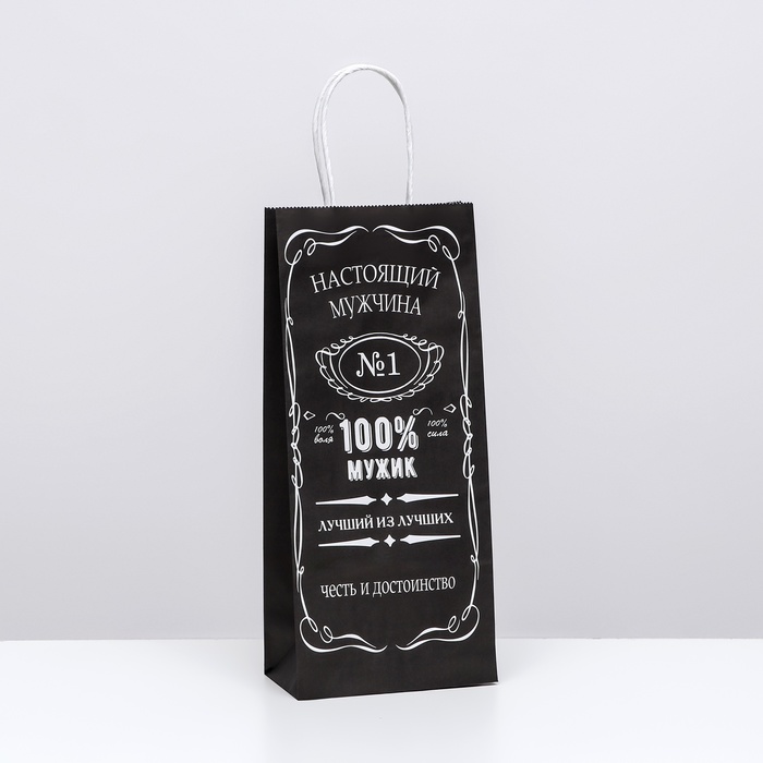 Пакет крафт под бутылку «Настоящий мужчина», 14×8×32 см