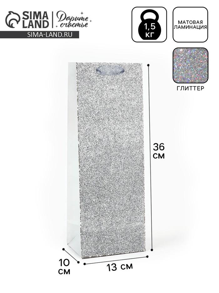 Пакет под бутылку «Поздравляю», глиттер, 13 х 36 х 10 см
