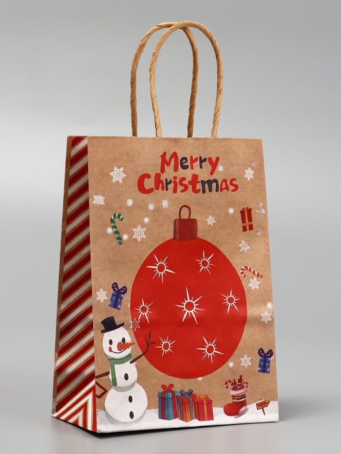 Подарочные пакеты новогодние крафт «Чудо», 15×21×8 см, Набор 5 шт.