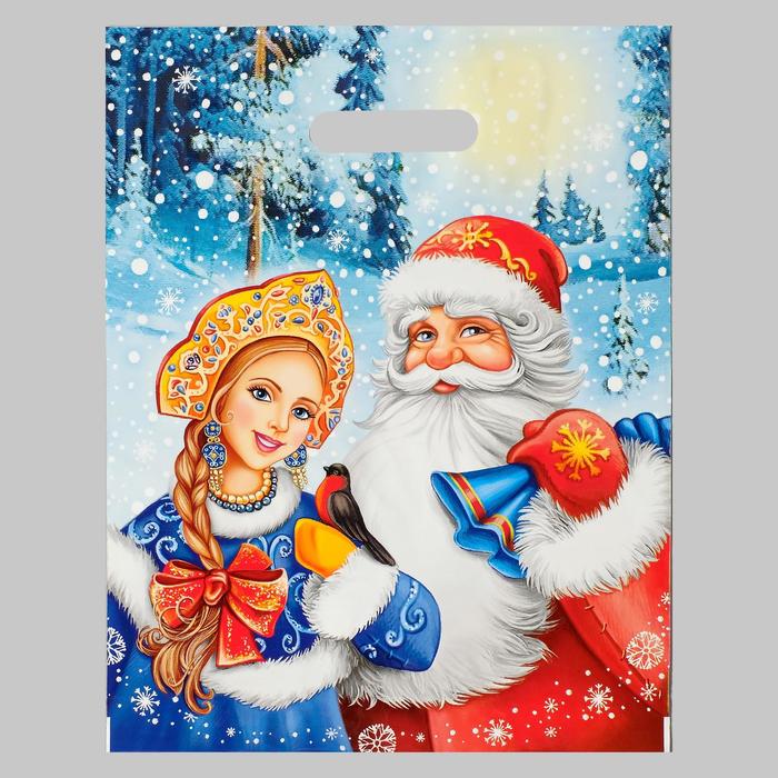 Пакет «Дед Мороз и Снегурочка», полиэтиленовый с вырубной ручкой, 31×40 см
