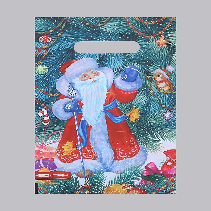 Пакет "Дед Мороз", полиэтиленовый с вырубной ручкой, 20х30 см.