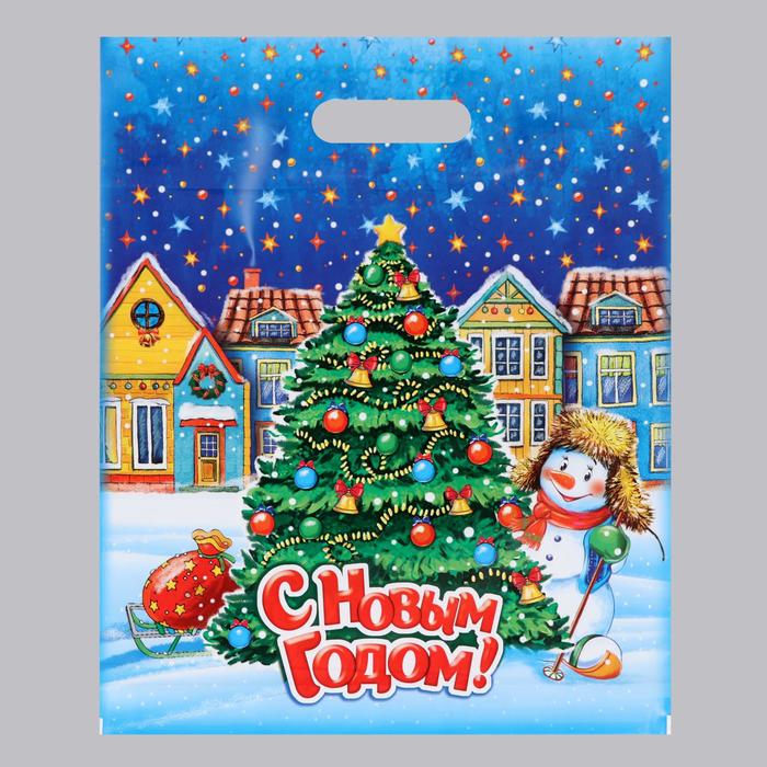 Пакет новогодний «Каникулы», полиэтиленовый с вырубной ручкой, 31×40 см