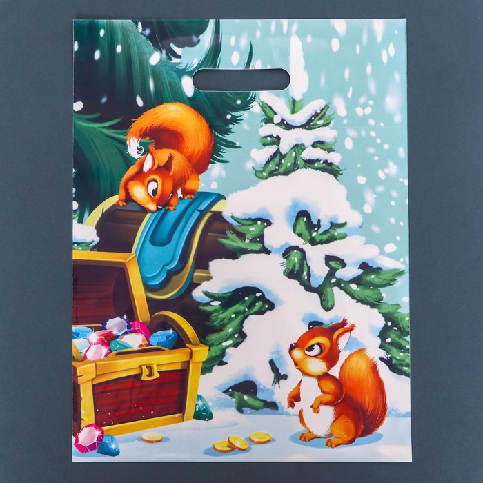 Пакет новогодний «Бельчата», глянец полиэтиленовый с вырубной ручкой, 30.5×40 см, 60 мкм