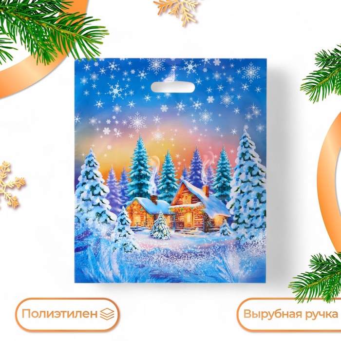 Пакет новогодний «Снежный лес», полиэтиленовый с вырубной ручкой 40×47 см